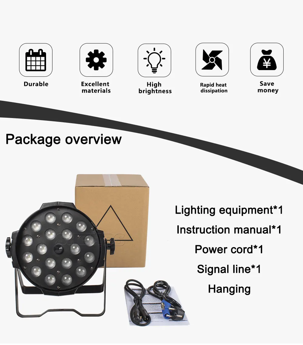 * Фиксирующая лампа: светодиодный 18 × 18 Вт RGBWA UV