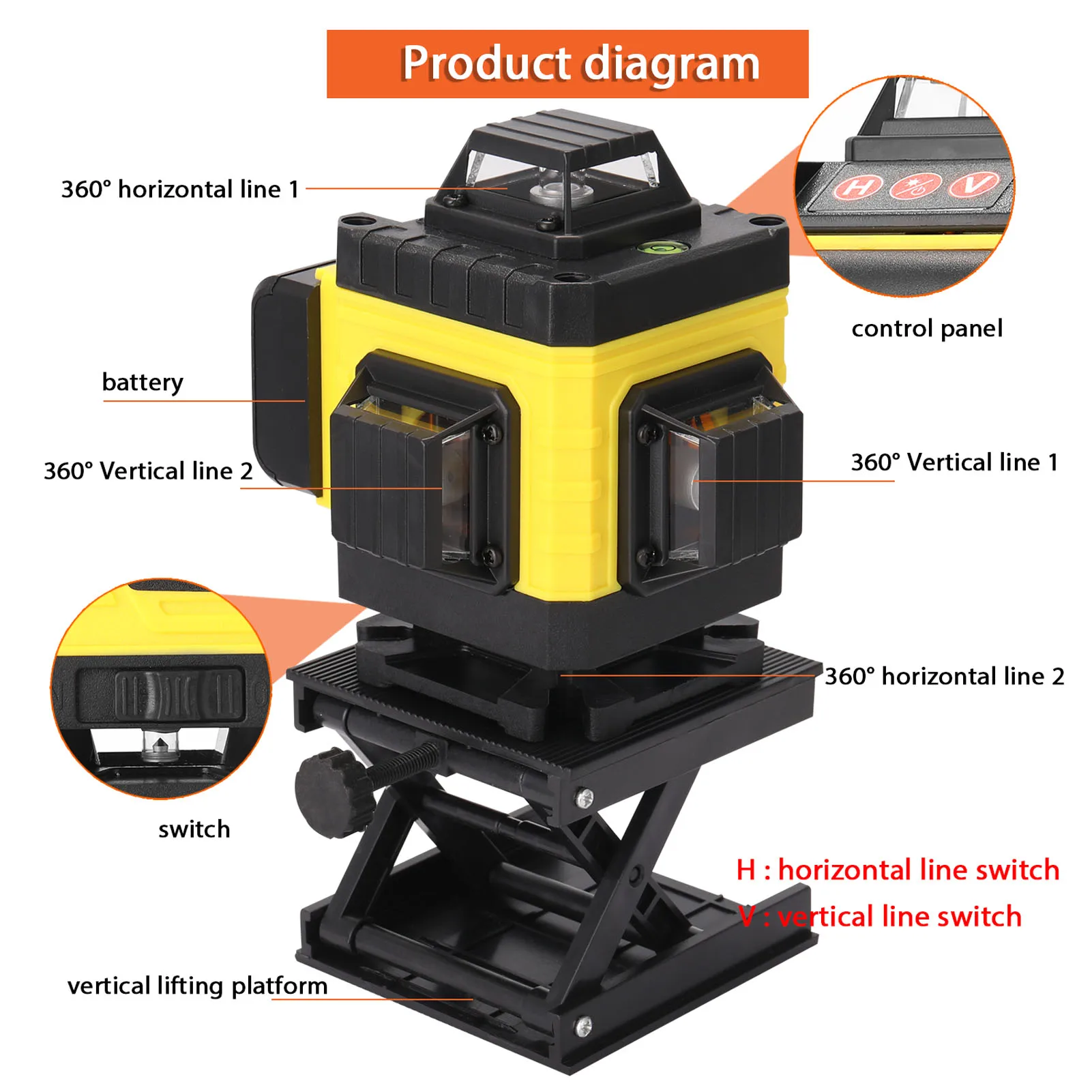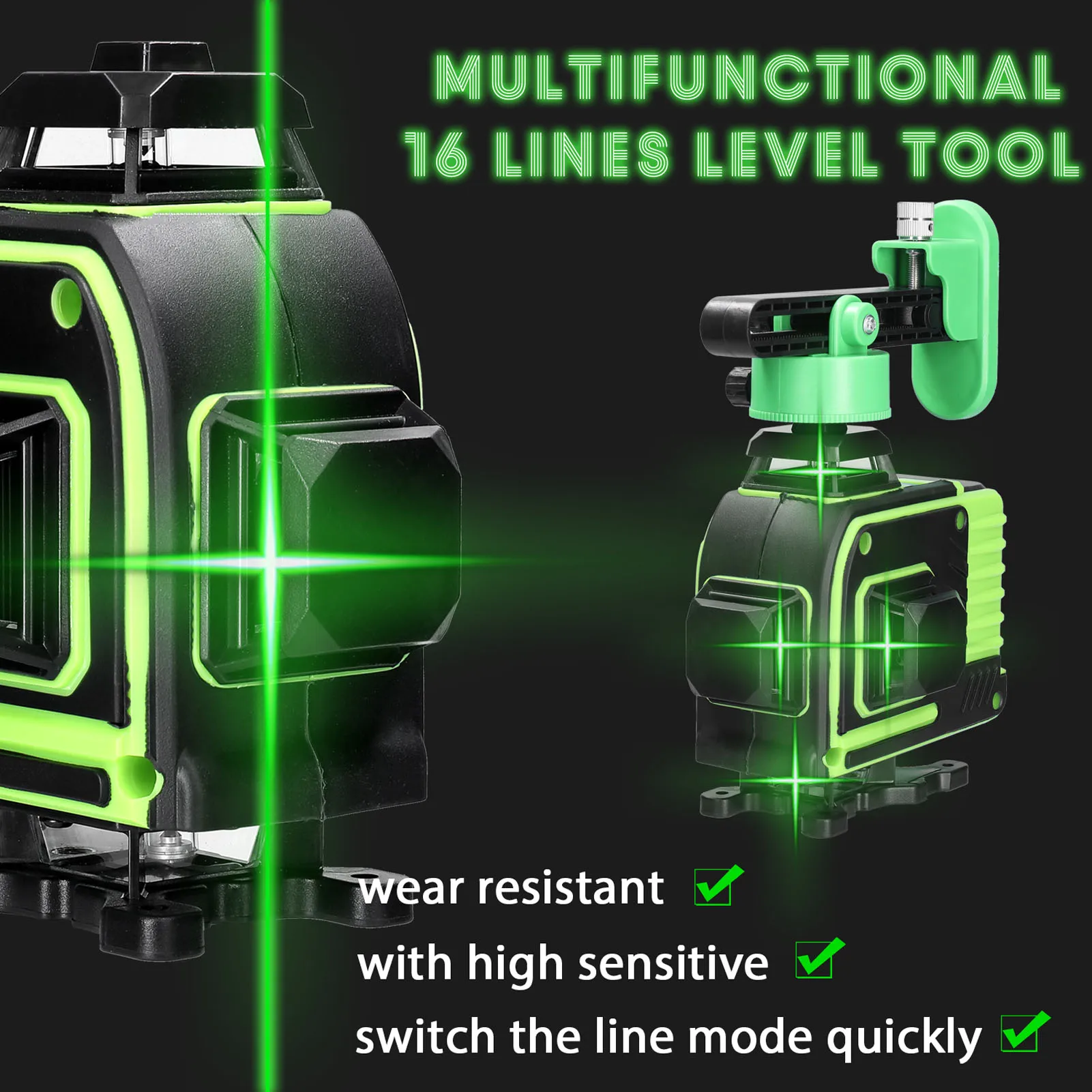 Выход 16 лазерных линий отдельно или одновременно для более точного позиционирования, с системой самонивелирования 3 °, гибкость и стабильность.