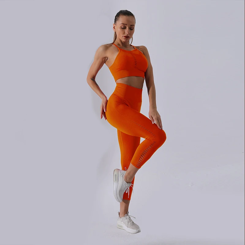 Новинка 2022, комплект из 2 предметов, женские спортивные костюмы для йоги, одежда для отдыха, укороченный топ, сексуальные женские леггинсы, 5 цветов