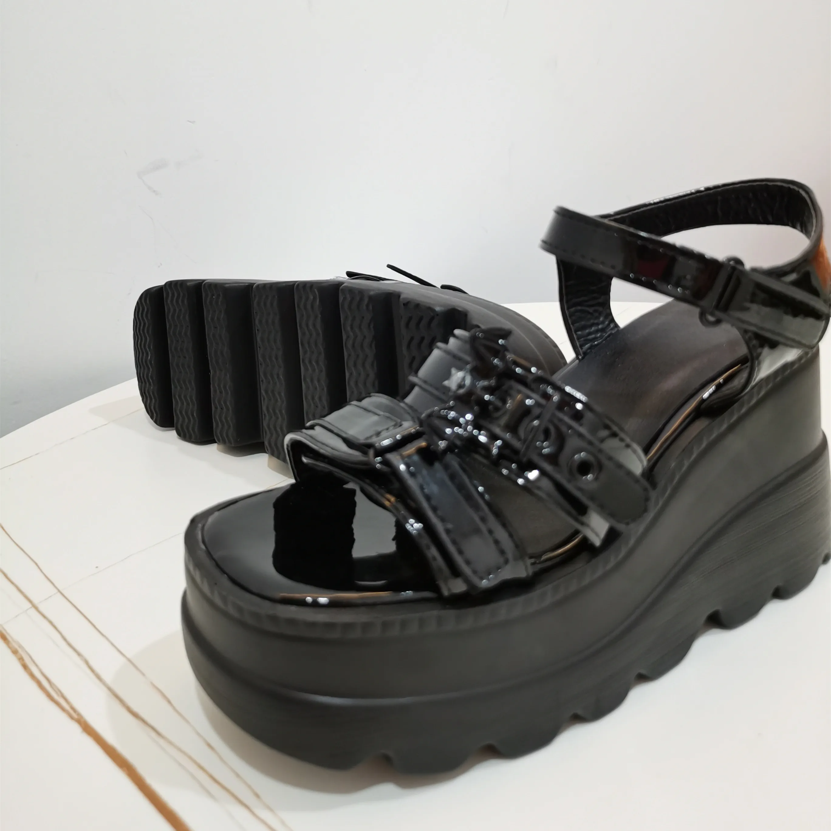 INS/брендовые модные красивые повседневные летние женские сандалии на платформе в стиле панк, готика; Большие размеры 43