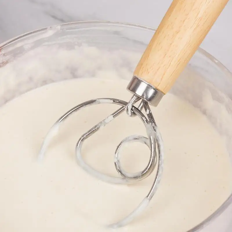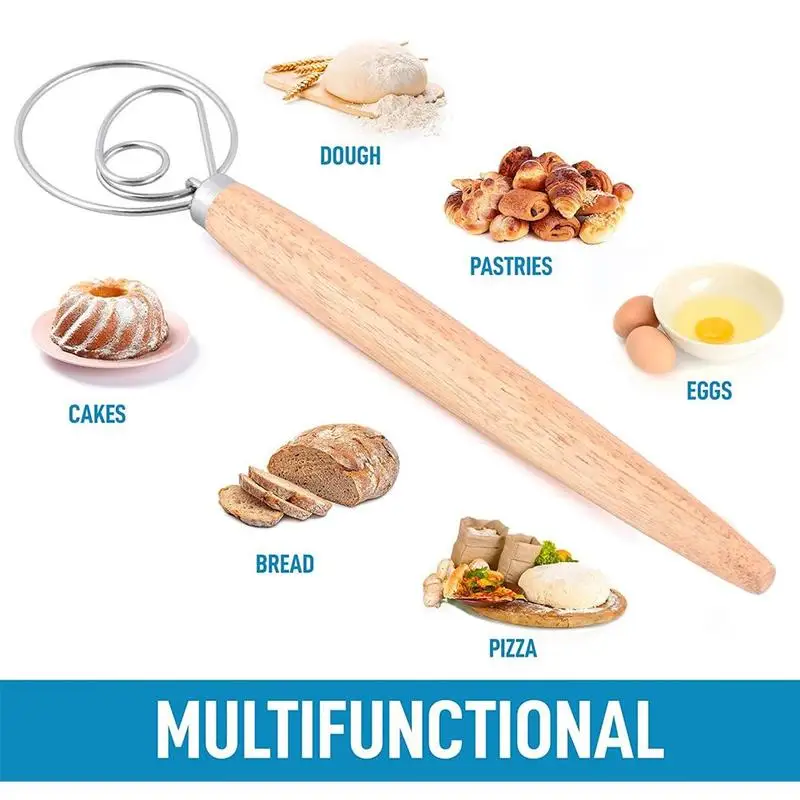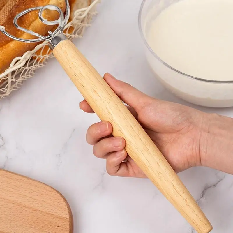 Мощная деревянная ручка позволяет легко обрабатывать большое количество тяжелого теста и может добиться меньших усилий для удовлетворения эргономичной мощности захвата во время смешивания.