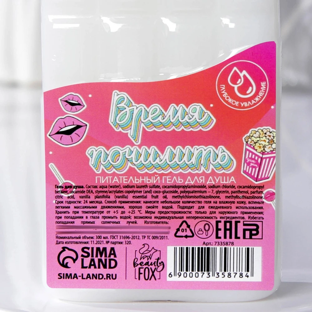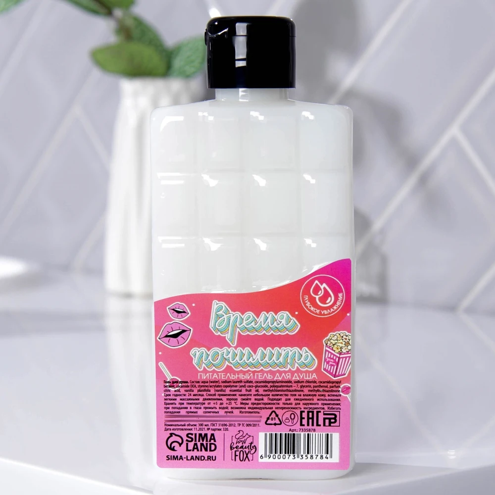 Состав: aqua (water), sodium laureth sulfate, cocamidopropylaminoxide, sodium chloride, cocamidopropyl betaine, cocamide DEA, styrene/acrylates copolymer (and) coco-glucoside, polyquaternium – 7, glycerin, panthenol, parfum, citric aсid, vanilla planifolia (vanilla) essential fruit oil, methylchloroisothiazolinone, methylisothiazolinone.