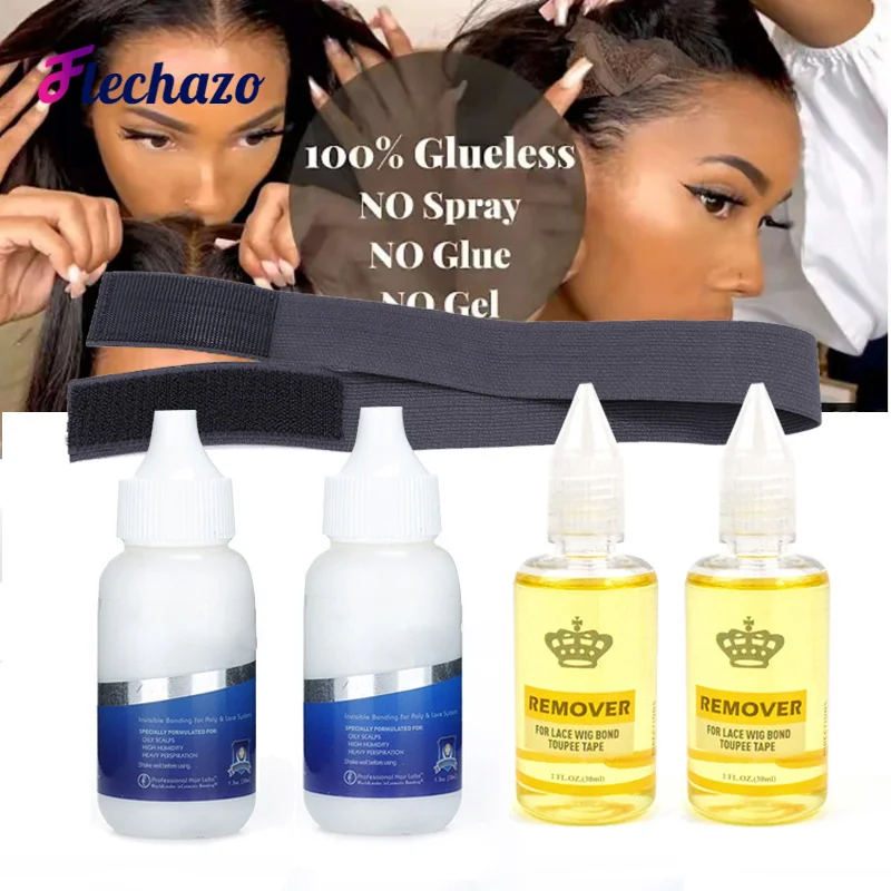 Супер Кружева передние парики клей для склеивания клей 38 мл с средство для удаления клея 30 мл для фронта шнурка с эластичный повязка под парик сжатия края повязка на голову