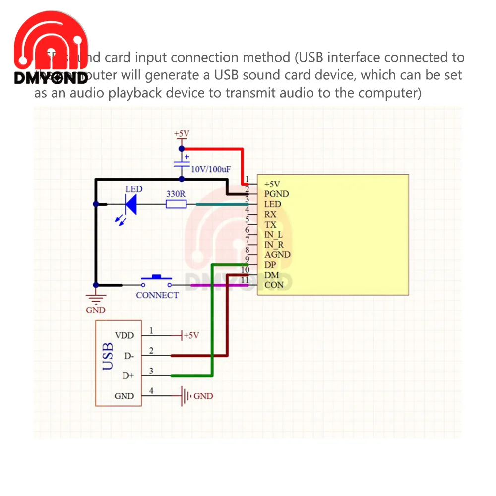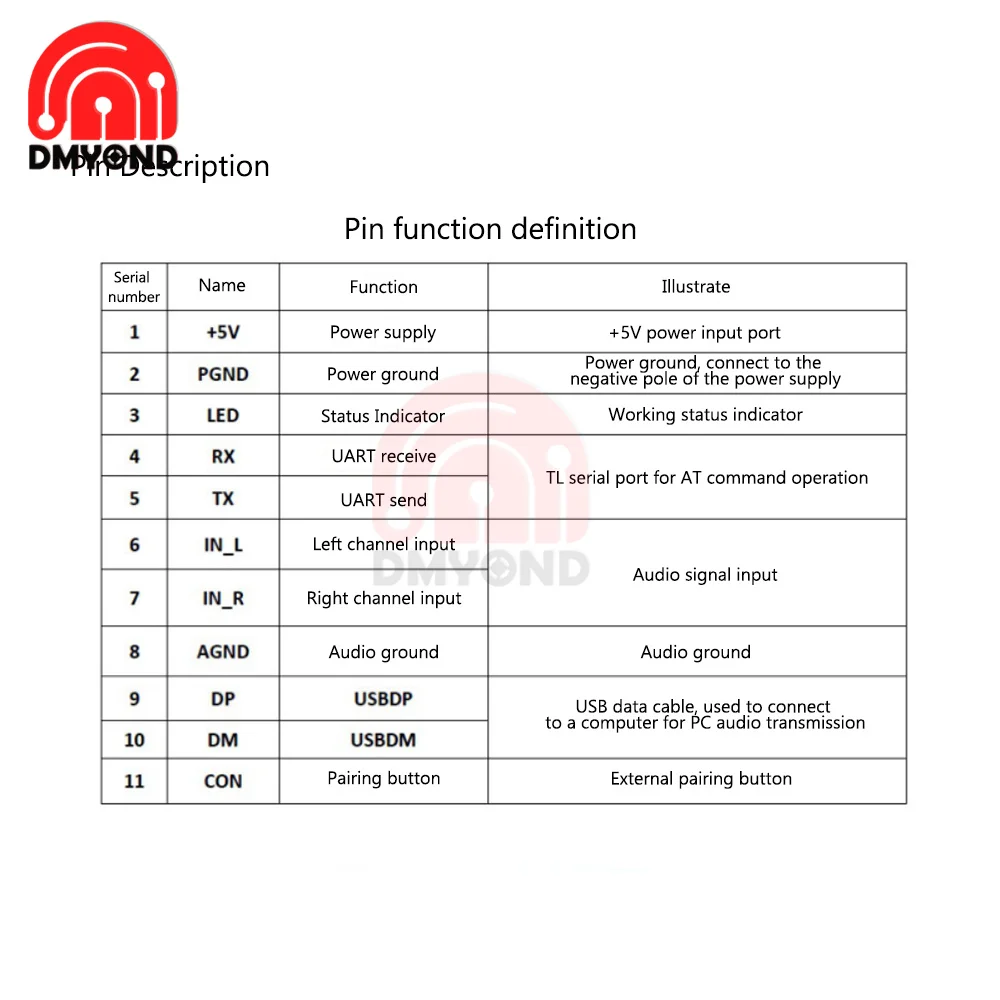 <2>: Этот модуль имеет функцию звуковой карты USB. Подключите компьютер и usb-порт данных этого модуля через usb-кабель, и система будет генерировать звуковое устройство USB, который может быть установлен в качестве устройства воспроизведения для передачи аудиосигнала системы с компьютера на bluetooth-совместимый приемник. Оборудование.