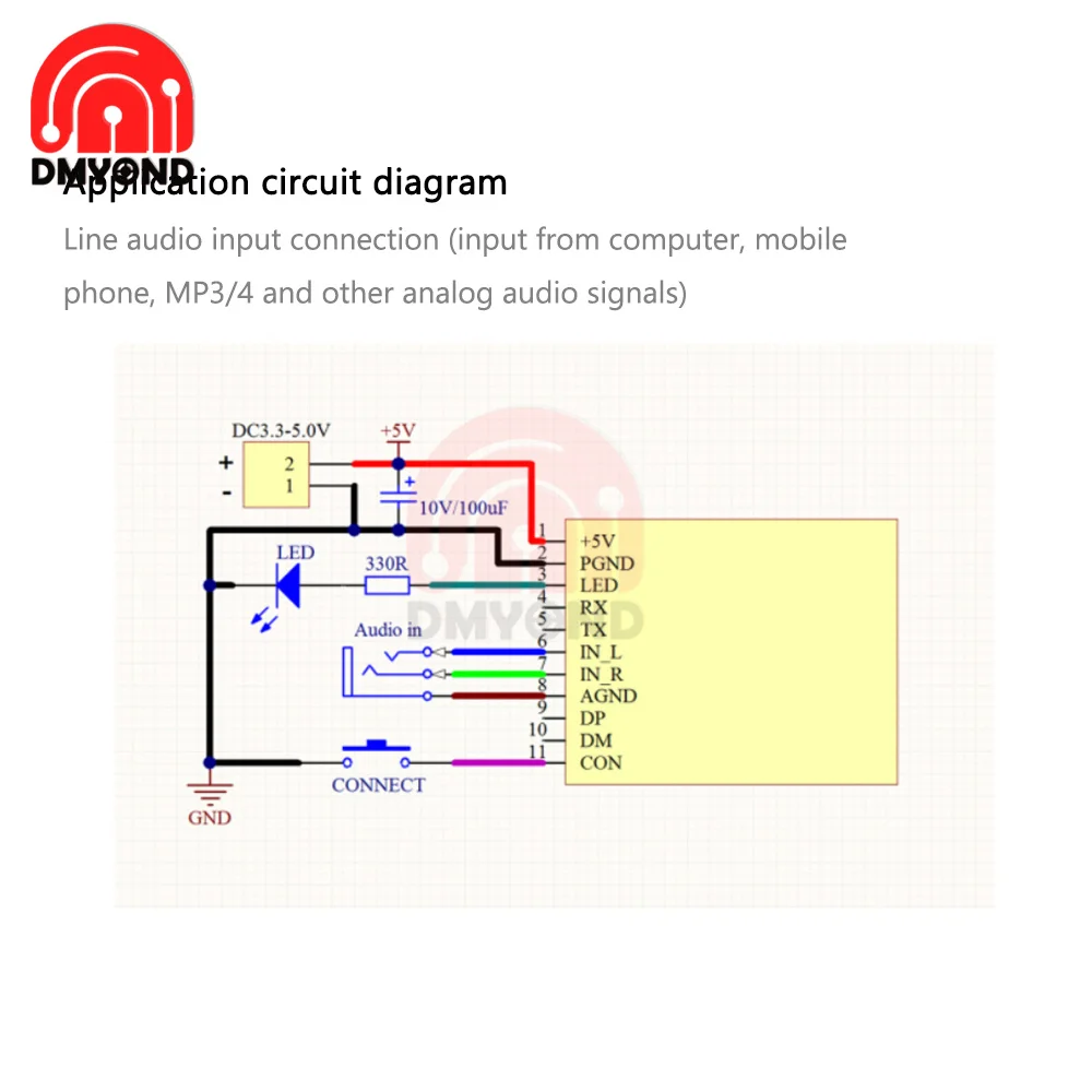 <3>: Этот модуль поддерживает Простое подключение и пользовательское соединение. Простой режим подключения контролирует bluetooth-совместимое соединение с одной кнопкой (CON), этот режим прост в использовании и подходит для общих приложений передачи звука. Пользовательский метод подключения отправляет команды через последовательный порт для управления модулем для выборочного подключения к bluetooth-совместимому приемнику с указанным mac-адресом или именем устройства, И поддерживает такие функции, как поиск имени устройства.