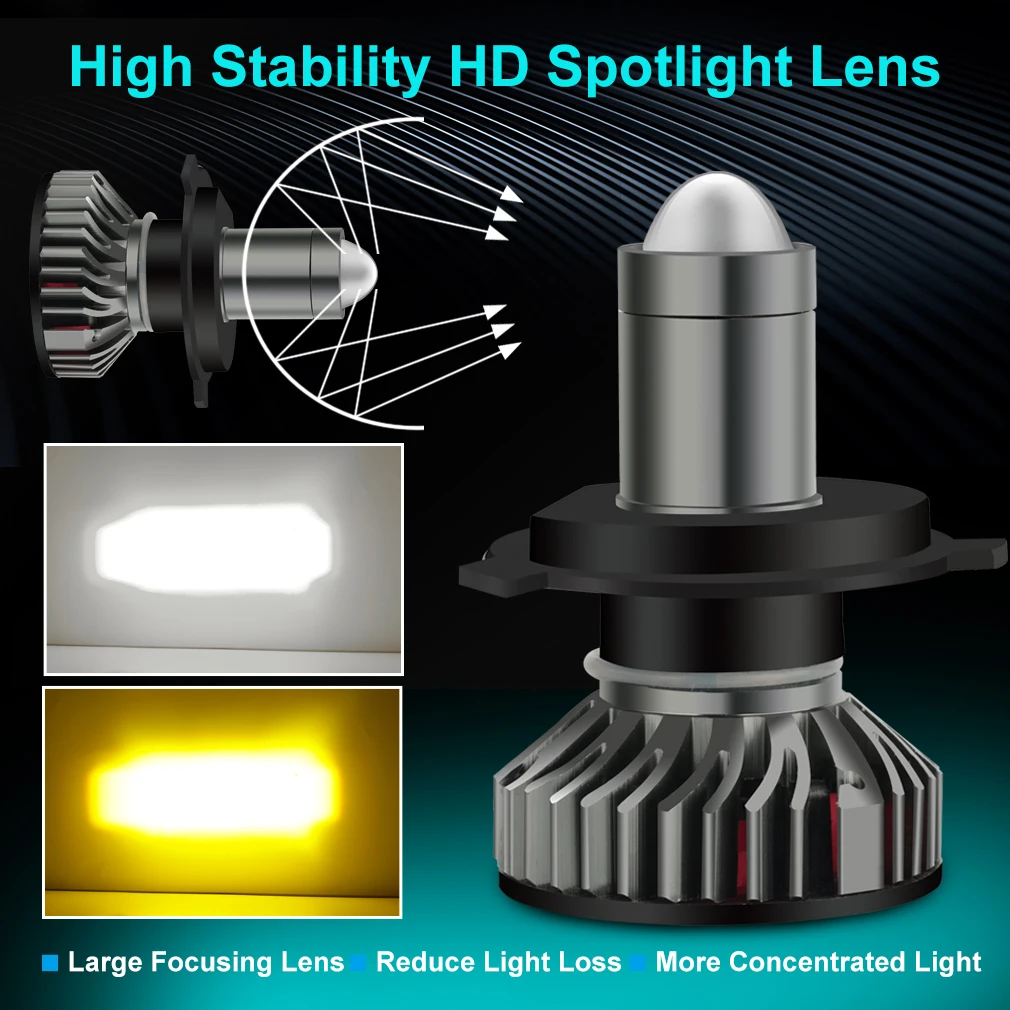 20000Lm H4 светодиодная фара мотоцикла лампы CSP объектив белого и желтого цвета Hi Lo луч мото лампы H4 скутер аксессуары противотуманные фары 9V 16V