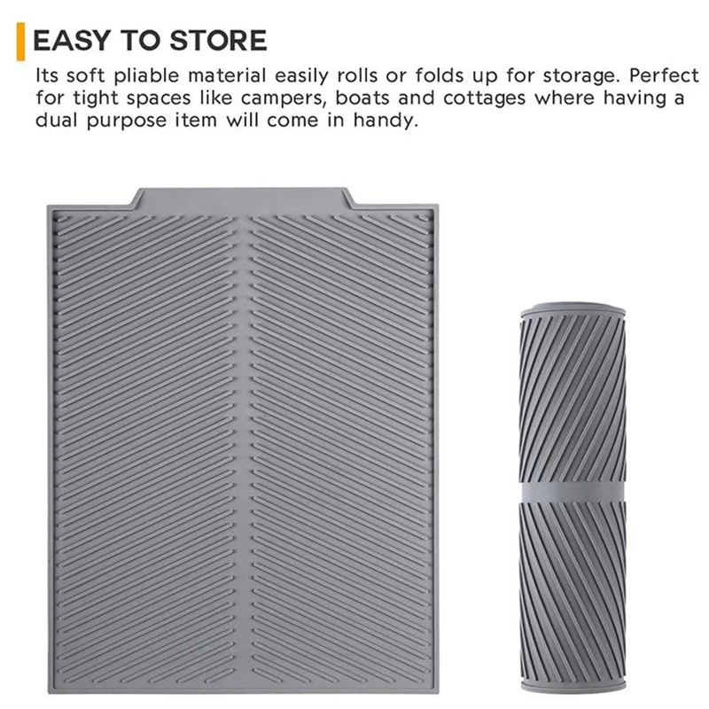 Термостойкий-в дополнение к высокому качеству, прочному, сушильному коврику для посуды, он также удваивается в качестве термостойкого коврика (до 450 F) для вашего стола и столешницы, идеально подходит как коврик для домашних животных, вкладыш для холодильника, вкладыш для шкафа.