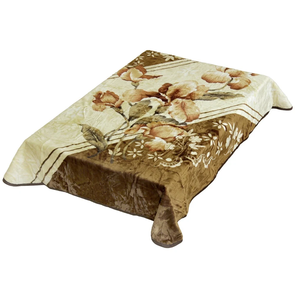 Плед "Ирис коричневый" 160x220 полуторный Смун, 1850 гр. Красивые пледы с цветами по доступным ценам.