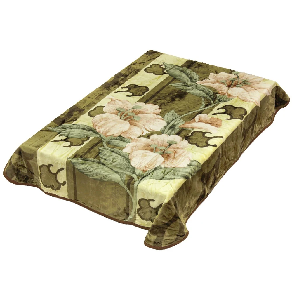 Плед "Тыква лилия" хаки 150x200 полуторный облегченный Смун, 1450 гр. Красивые пледы с цветочным рисунком по доступной цене.