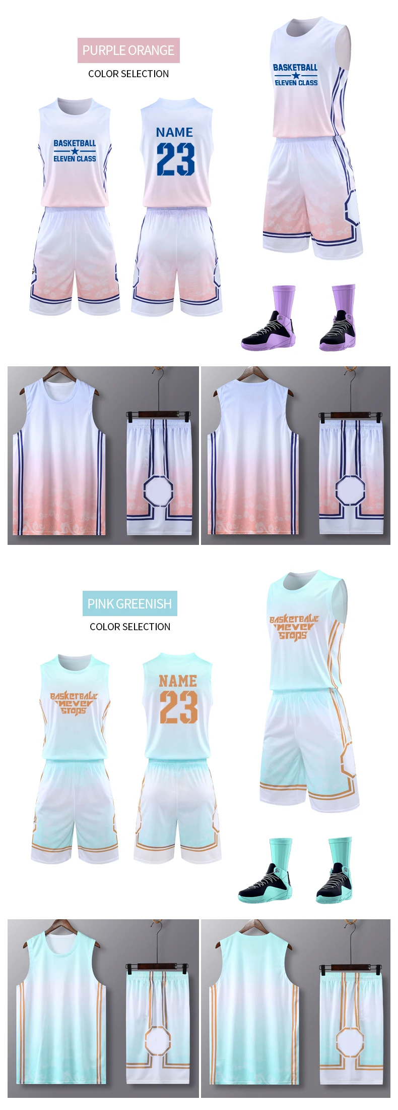 Если вы хотите настроить свой номер, имя и логотип в баскетбольном наборе, пожалуйста, свяжитесь с нами и подробно опишите свой запрос. Наши дизайнеры имеют глубокие знания о настройках, которые вас заинтересуют.