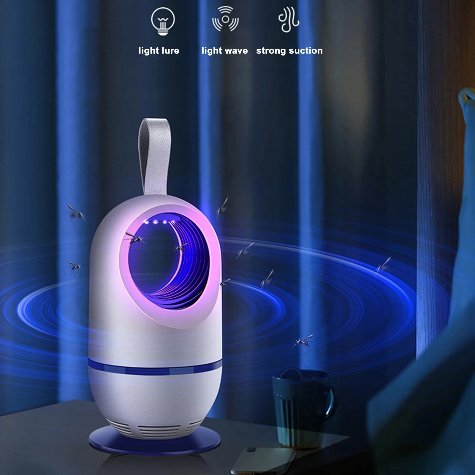 --- [Как он работает]: usb-разъем. Шесть ламп уф-светильник излучают длину волны 365нм. Эта длина волны имеет роковое притяжение комаров насекомых. Москитный светильник притягивается к источнику, и затем он попадает в поднос от комаров под сильным циклоном. Мощный циклон сделает комаров обезвоженными и умершими.