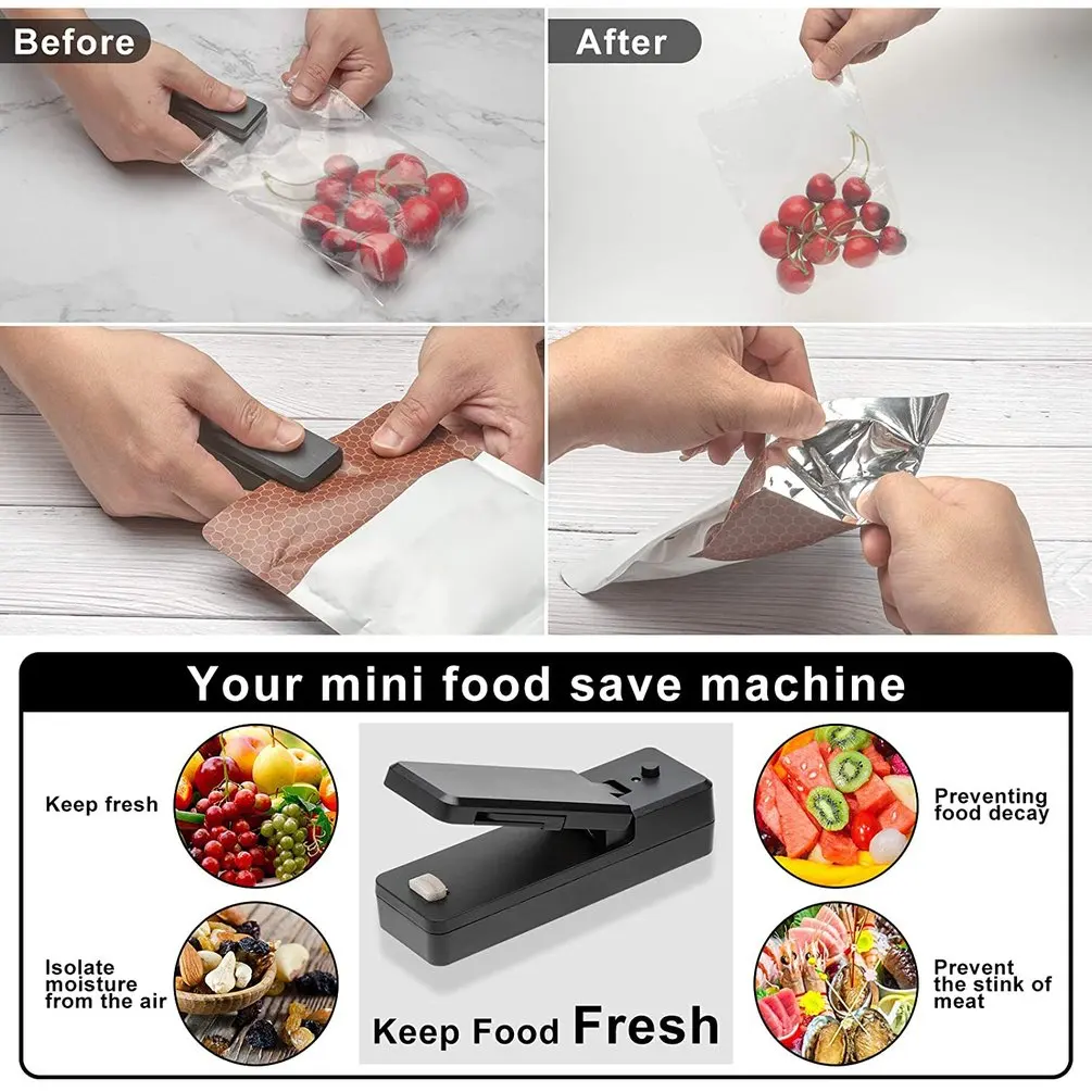 1. Два в одном Термоупаковщик: Этот мини-пакет упаковщик очень подходит для упаковки и предотвращения того, чтобы еда и закуски становились влажными.