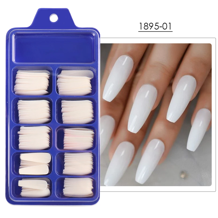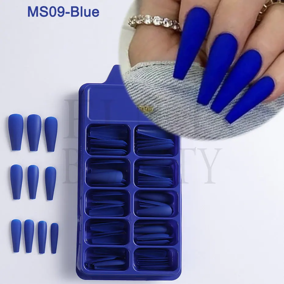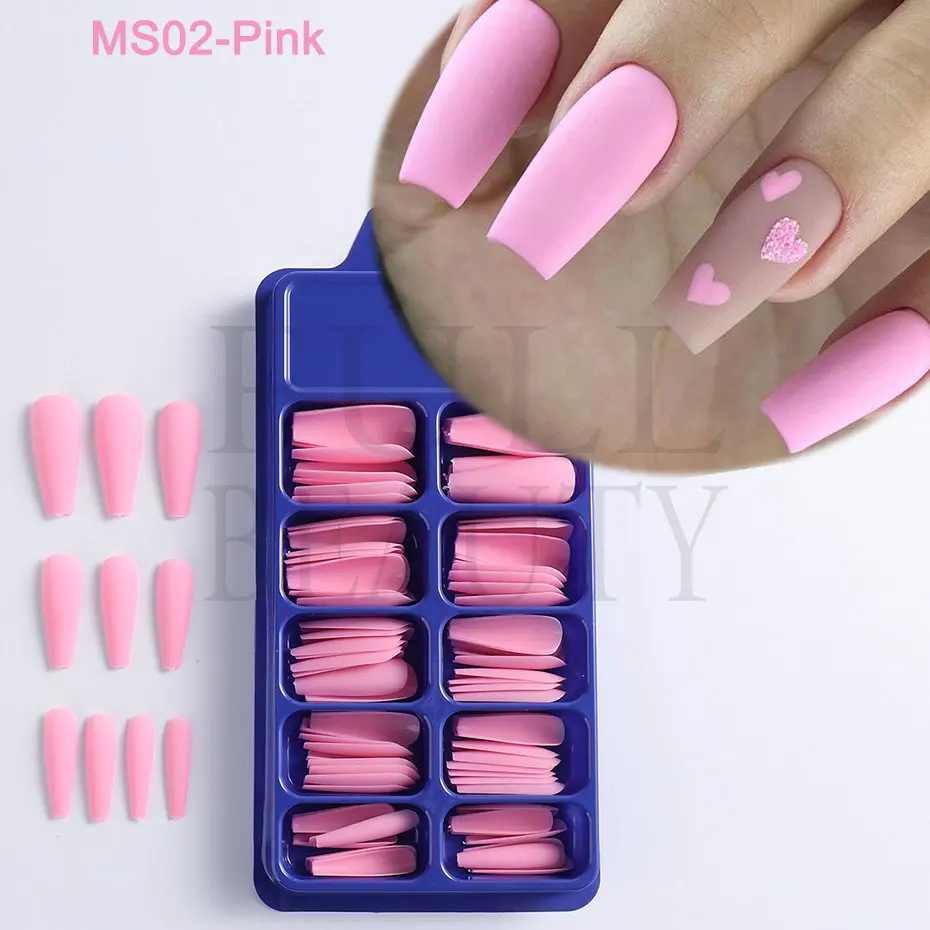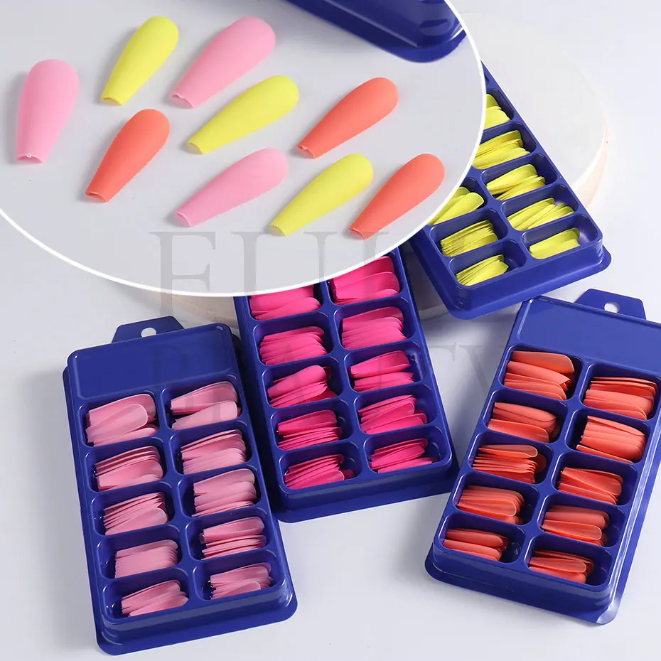100 шт./кор., матовые, отстегивающиеся длинные ногти, балерины, ноские, для маникюра, накладные кончики, полное покрытие, гроб, акриловые накладные ногти