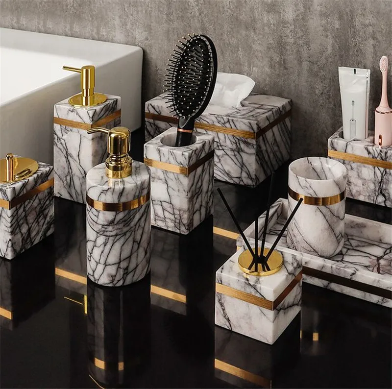 Натуральное Мраморное жидкое мыло для ванны, диспенсер для ароматерапии, бутылка для зубной щетки, подставка для салфеток, поднос, блюдо, свадебные подарки, продажа по частям