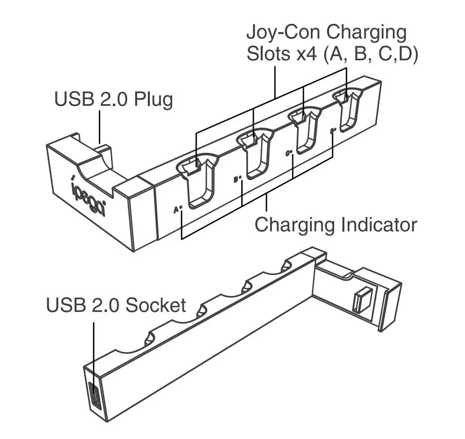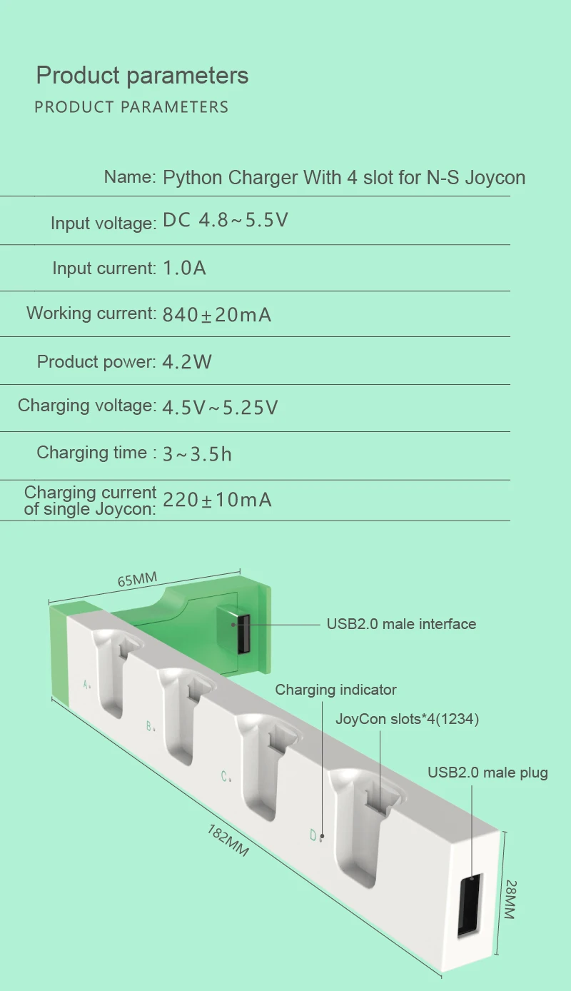 2. Этот продукт имеет 4 слота, используемые для зарядки, поддержка зарядки 1-4 шт геймпадов Joy-con одновременно;