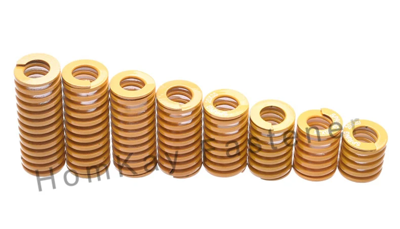 Применение: пружины пресс-формы широко используются в штамповочных штампах, штампах для литья металла, пластиковых формочках и других эластичных машинах и оборудовании для точного движения и автомобилях. Желтый и синий в основном используются для сборки пластиковых форм. Красный, зеленый и коричневый в основном используются для сборки оборудования.