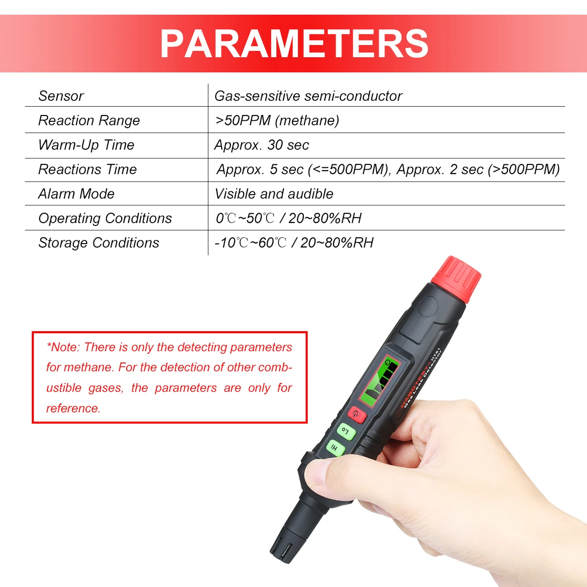 * Есть только параметры Обнаружения метана. Для обнаружения других горючих газов, параметры только для справки.