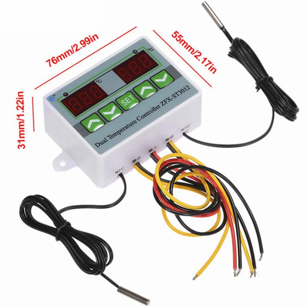 ZFX-ST3012 двойной Температура Управление; Цифровой термостат для инкубатора Управление микрокомпьютер двойной зонд AC 220 В, 12 В, 24 В постоянного тока
