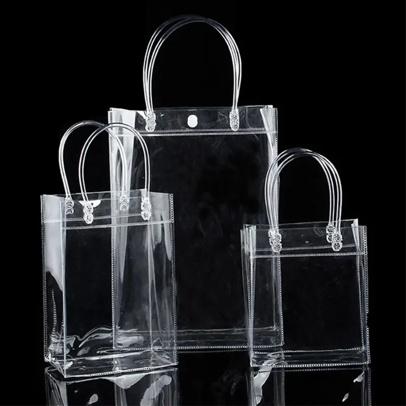 Прочная прозрачная вместительная сумка из ПВХ с защелкой.