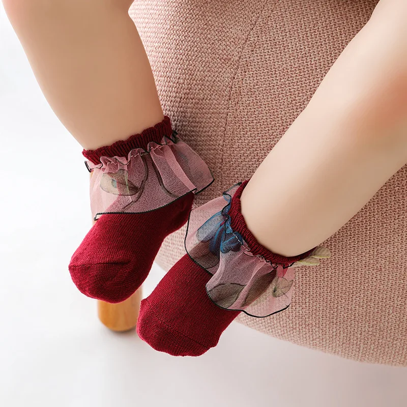 Носки для маленьких девочек; Хлопковые кружевные носки с оборками и рисунком для новорожденных; Недорогие носки для танцев; Сезон весна-осень; Аксессуары для детской одежды