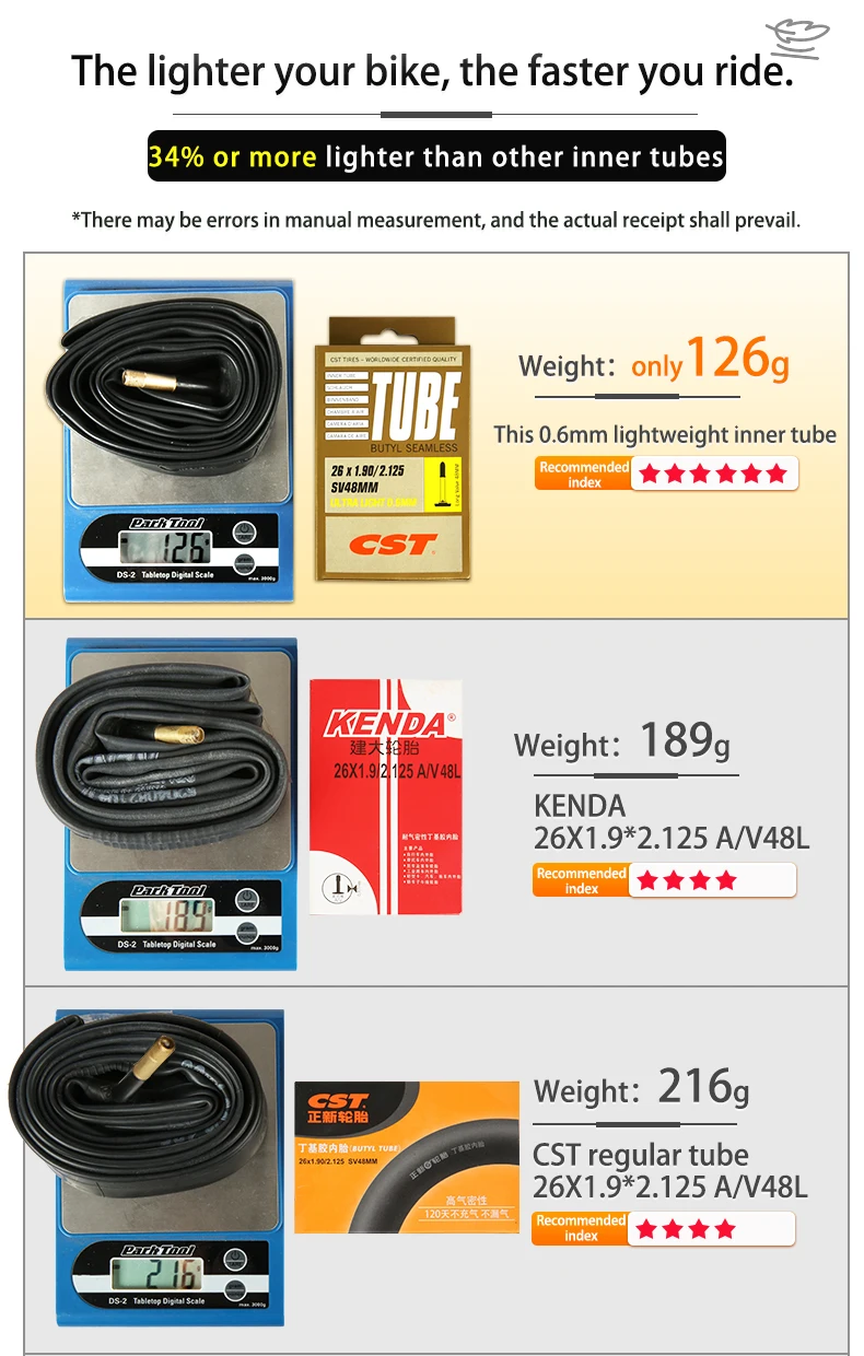 ** Эта внутренняя трубка может достичь уровня гоночной конкуренции. Как мы все знаем, чем легче велосипед, тем быстрее будет ездить. Большая часть общего веса велосипеда происходит из рамы и шин (внутренняя и внешняя).