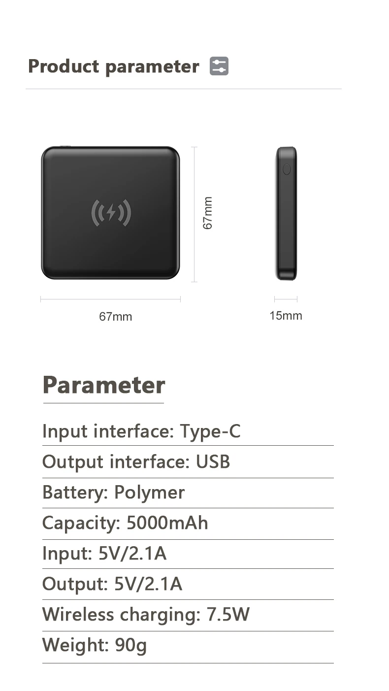 [Параметры продукта]: pd18w power bank + 10W беспроводное зарядное устройство