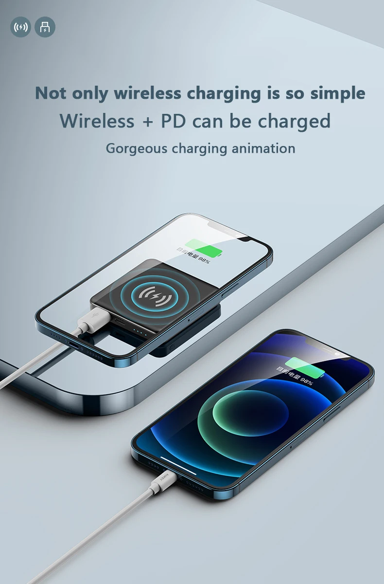 1. Pd20w Магнитный поглощающий внешний аккумулятор + 10W Беспроводная зарядка
