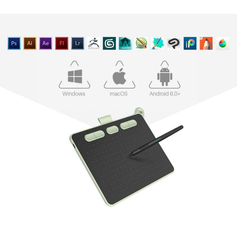 Устройство совместимо с большинством программ для рисования, таких как Photoshop, SAI, Painter, Illustrator, Clip Studio, Krita, а ещё поддерживает игру OSU.
