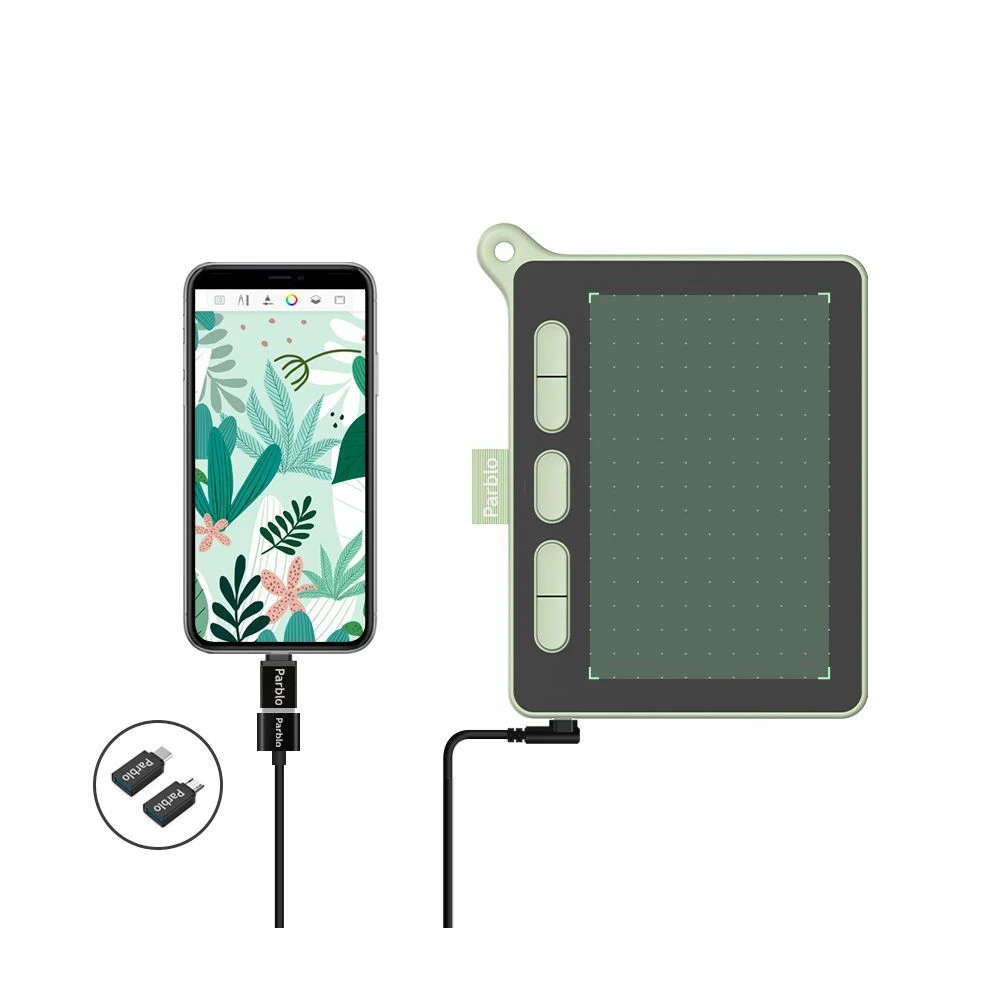 Графический планшет поддерживает не только Windows / MacOS, но также совместим со смартфонами и планшетами на системе Android. Для работы на устройствах Android в комплекте предусмотрены 2 переходника для micro-USB и USB Type-C.