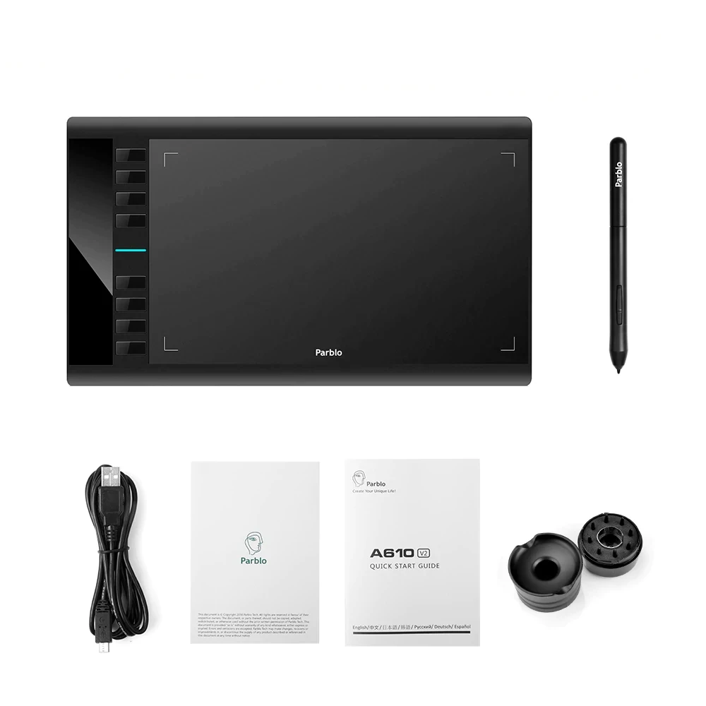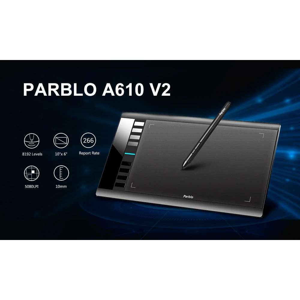 Размеры, мм 350 х 233 х 8 Гарантия 1 год Артикул A610 V2 Rich-контент JSON { "content": [ { "widgetName": "raShowcase", "type": "billboard", "blocks": [ { "imgLink": "", "img": { "src": "//cdn1.ozone.ru/s3/multimedia-0/6260464212.jpg", "srcMobile": "//cdn1.ozone.ru/s3/multimedia-y/6260464210.jpg", "alt": "Графический планшет Parblo A610 V2", "width": 1416, "height": 708, "widthMobile": 777, "heightMobile": 777 }, "title": { "content": [ "Графический планшет Parblo A610 V2" ], "size": "size5", "align": "center", "color": "color2" }, "text": { "content": [ "A610 V2 имеет усовершенствованную матовую поверхность формата А4, которая эмитирует поверхность бумаги. Такая поверхность даст плавность скольжения пера по рабочей поверхности и придаст приятные тактильные ощущения." ], "size": "size4", "align": "center", "color": "color2" } } ] }, { "widgetName": "raShowcase", "type": "chess", "blocks": [ { "img": { "src": "//cdn1.ozone.ru/s3/multimedia-x/6260464209.jpg", "srcMobile": "//cdn1.ozone.ru/s3/multimedia-x/6260464209.jpg", "alt": "Точность пера", "width": 777, "height": 777, "widthMobile": 777, "heightMobile": 777 }, "imgLink": "", "title": { "content": [ "Точность пера" ], "size": "size5", "align": "left", "color": "color2" }, "text": { "size": "size4", "align": "left", "color": "color2", "content": [ "Parblo A610 V2 обладает 8192 уровнями чувствительности к нажатию, позволяющими контролировать каждый штрих с высочайшей точностью, проводить точные линии необходимой толщины и менять мельчайшие оттенки в цветовой гамме в зависимости от уровня нажатия пером." ] }, "reverse": false }, { "img": { "src": "//cdn1.ozone.ru/s3/multimedia-z/6260464211.jpg", "srcMobile": "//cdn1.ozone.ru/s3/multimedia-z/6260464211.jpg", "alt": "Размер рабочей области", "width": 777, "height": 777, "widthMobile": 777, "heightMobile": 777 }, "imgLink": "", "title": { "content": [ "Размер рабочей области" ], "size": "size5", "align": "right", "color": "color2" }, "text": { "size": "size4", "align": "right", "color": "color2", "content": [ "Формат рабочей области 10х6 дюймов (А4). Такие масштабы избавят от скованности в движениях и позволят работать на большом пространстве." ] }, "reverse": true }, { "img": { "src": "//cdn1.ozone.ru/s3/multimedia-1/6260464213.jpg", "srcMobile": "//cdn1.ozone.ru/s3/multimedia-1/6260464213.jpg", "alt": "Топовые технические характеристики", "width": 777, "height": 777, "widthMobile": 777, "heightMobile": 777 }, "imgLink": "", "title": { "content": [ "Топовые технические характеристики" ], "size": "size5", "align": "left", "color": "color2" }, "text": { "size": "size4", "align": "left", "color": "color2", "content": [ "Parblo A610 V2 имеет повышенную скорость отклика 266 PPS, что способствует мгновенному реагированию и передаче сигнала при взаимодействии пера с планшетом и компьютером. А рабочая область с разрешением 5080 LPI передаст всю гармонию красок, эмоций и мастерства на электронный холст." ] }, "reverse": false }, { "img": { "src": "//cdn1.ozone.ru/s3/multimedia-1/6260464213.jpg", "srcMobile": "//cdn1.ozone.ru/s3/multimedia-1/6260464213.jpg", "alt": "Программируемые клавиши", "width": 777, "height": 777, "widthMobile": 777, "heightMobile": 777 }, "imgLink": "", "title": { "content": [ "Программируемые клавиши" ], "size": "size5", "align": "right", "color": "color2" }, "text": { "size": "size4", "align": "right", "color": "color2", "content": [ "Функционал дополняют 8 горячих клавиш, еще две присутствуют на корпусе пера, каждую можно настроить отдельно под нужные сочетания клавиш, позволяя обойтись без использования клавиатуры." ] }, "reverse": true }, { "img": { "src": "//cdn1.ozone.ru/s3/multimedia-4/6260464216.jpg", "srcMobile": "//cdn1.ozone.ru/s3/multimedia-4/6260464216.jpg", "alt": "Подходит для правши и левши", "width": 777, "height": 777, "widthMobile": 777, "heightMobile": 777 }, "imgLink": "", "title": { "content": [ "Подходит для правши и левши" ], "size": "size5", "align": "left", "color": "color2" }, "text": { "size": "size4", "align": "left", "color": "color2", "content": [ "Модель может быть адаптирована к работе как для правой, так и левой руки." ] }, "reverse": false }, { "img": { "src": "//cdn1.ozone.ru/s3/multimedia-3/6260464215.jpg", "srcMobile": "//cdn1.ozone.ru/s3/multimedia-3/6260464215.jpg", "alt": "Интерфейс", "width": 777, "height": 777, "widthMobile": 777, "heightMobile": 777 }, "imgLink": "", "title": { "content": [ "Интерфейс" ], "size": "size5", "align": "right", "color": "color2" }, "text": { "size": "size4", "align": "right", "color": "color2", "content": [ "Планшет A610 V2 подключается к компьютеру или ноутбуку при помощи micro-USB кабеля и предназначен для создания 