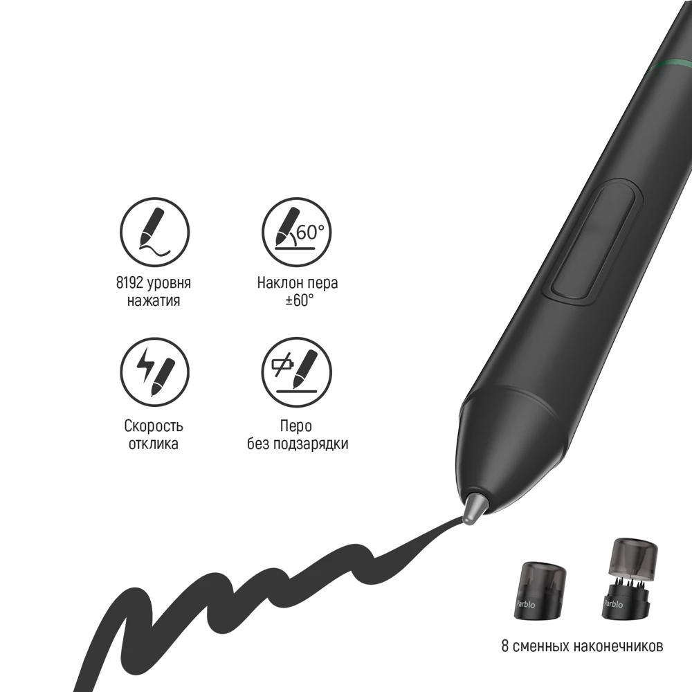 Parblo Intangbo S поддерживают функцию наклона пера 60 градусов. Разрешение рабочей области 5080 LPI, скорость отклика пера 266 PPS, 8192 уровней давления.