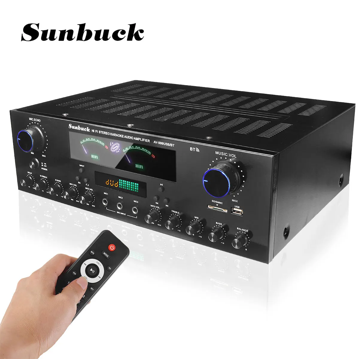 -Поддержка: Подключите USB , SD, аудио вход (компьютер/ноутбук, телевизор, проектор, телеприставка, DVD, мобильный телефон, lapd и т. Д.), 3 микрофонных входа.