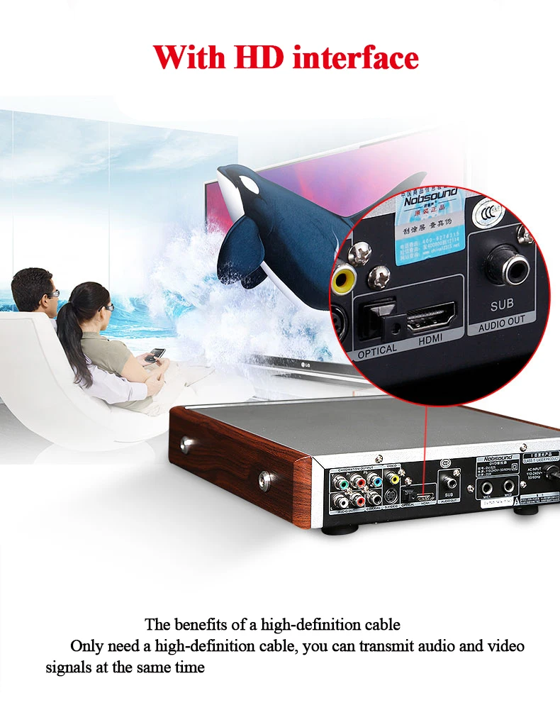 Поддерживает оптический коаксиальный/HDMI/S терминал интерфейсы, при воспроизведении фильмов с 5,1-выходной канал, вы будете чувствовать себя шокирующие и резкого присутствия, как будто весь кино находится в вашем доме.