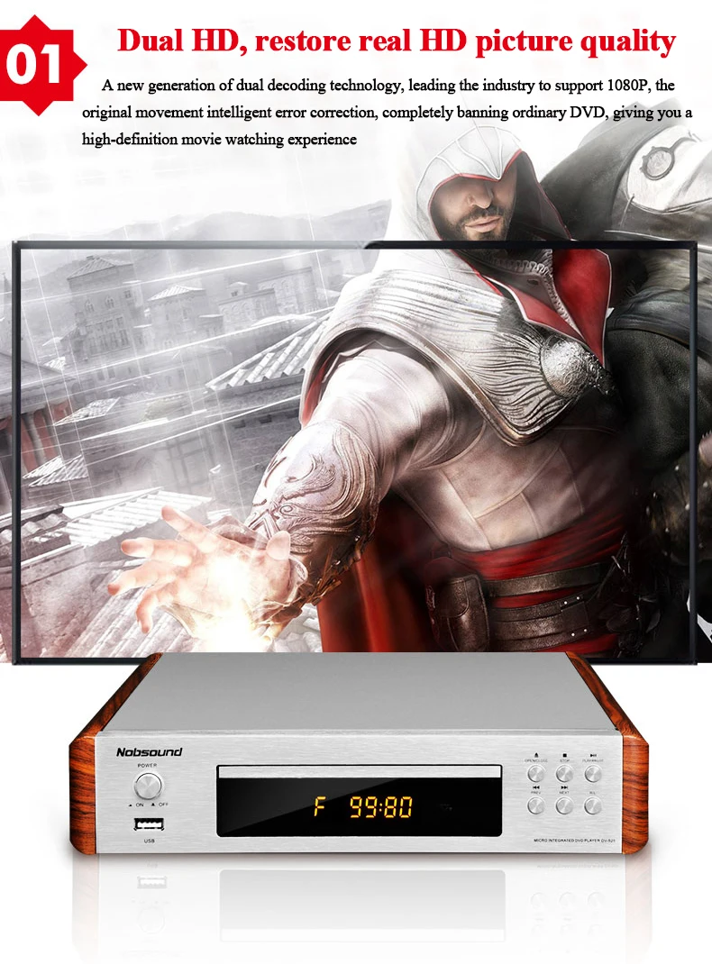 Новое поколение технологии двойного декодирования поддерживает 1080P, высокое качество, интеллектуальная коррекция ошибок, полностью заменяет обычный DVD, что дает вам опыт просмотра высокой четкости