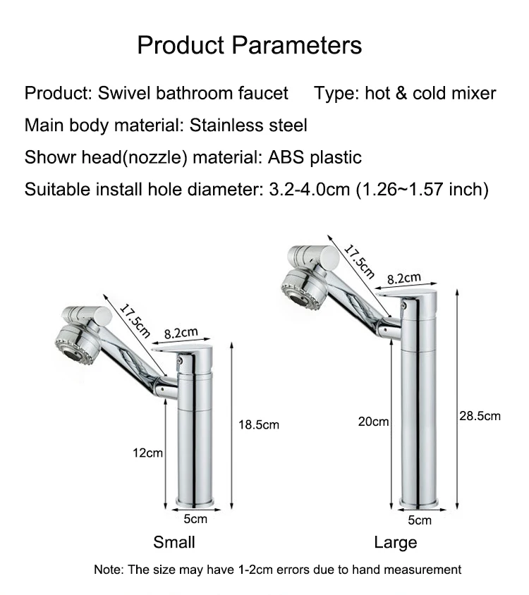 1. Разные страны имеют различные спецификации шлангов, пожалуйста, обратите внимание на необходимый вам размер. Если вы выберете товар с помощью шлангов, мы отправим DN15 (G1/2 дюйма) по умолчанию. Если вам нужны другие шланги (3/8 или 9/16), пожалуйста, оставьте нам сообщение или сообщение.
