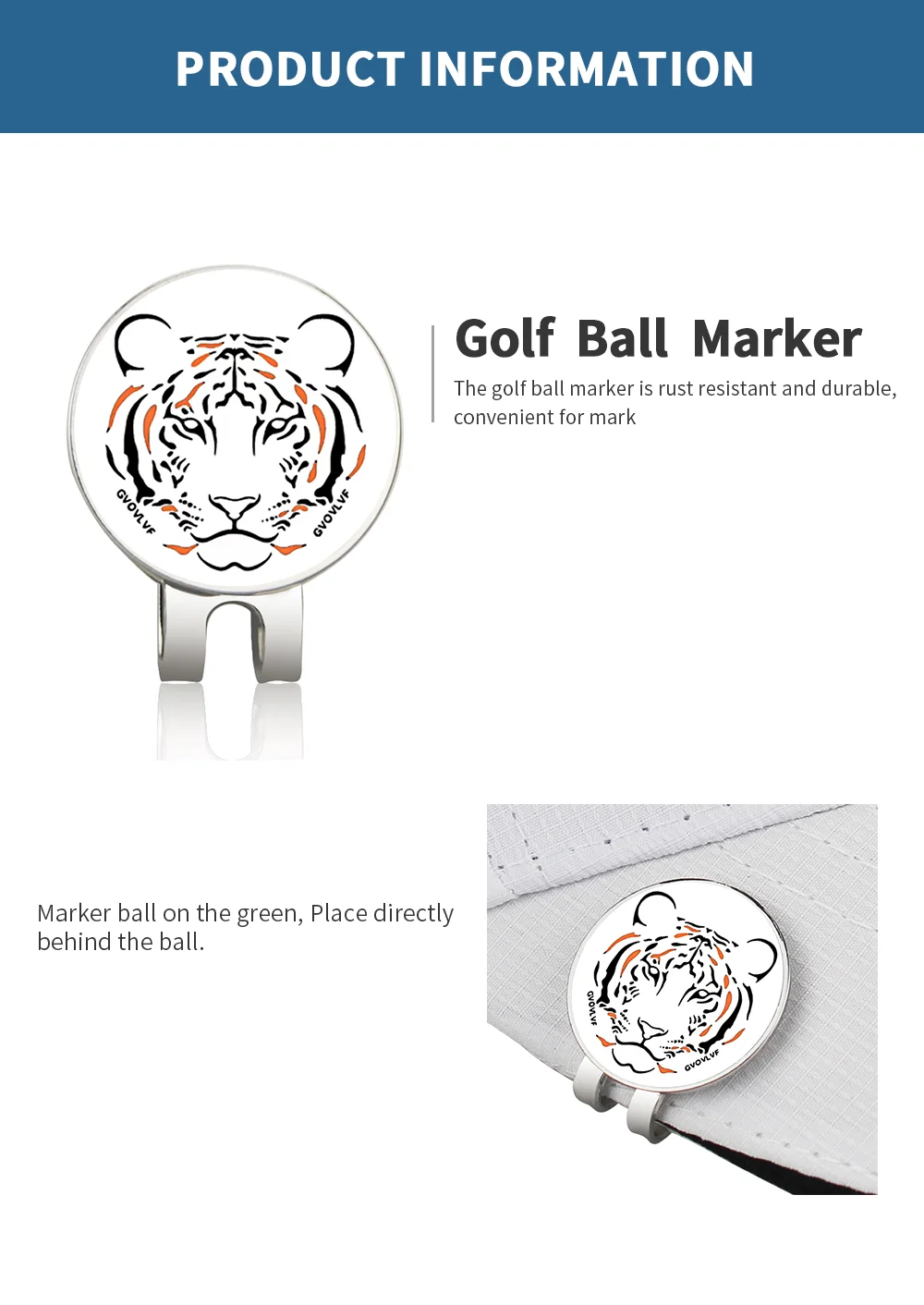 Съемный бренд гольф-маркер с магнитной шляпой для гольфа/кепкой, аксессуары для гольфа, маркер из сплава для мальчиков и девочек, детский подарок с тигром