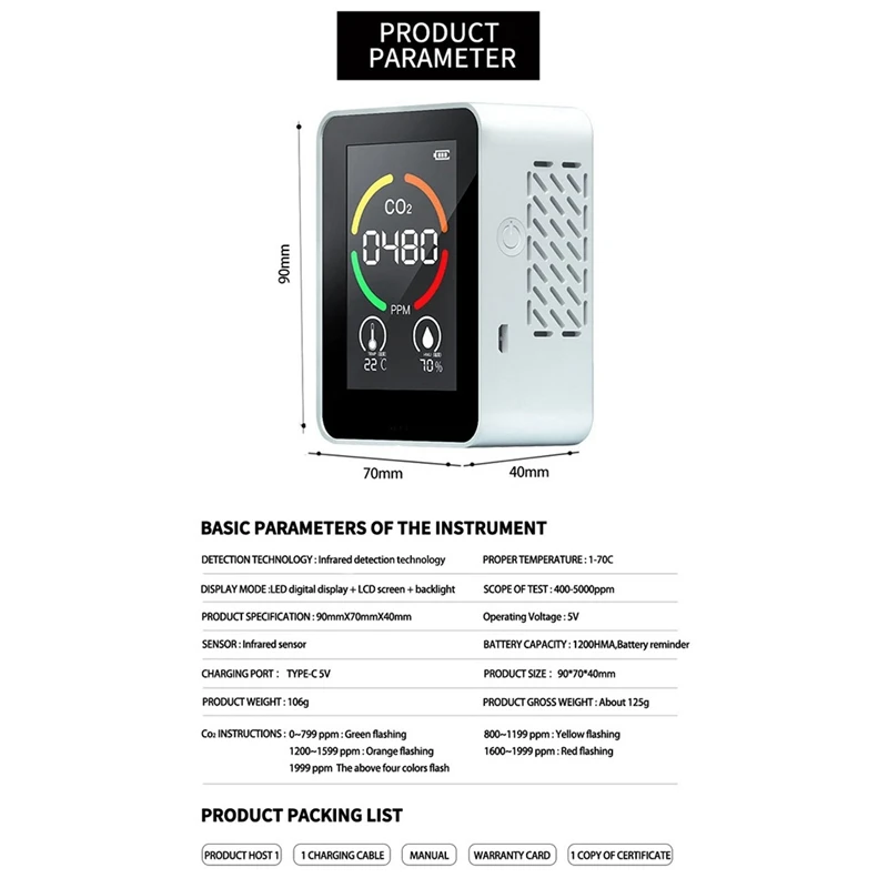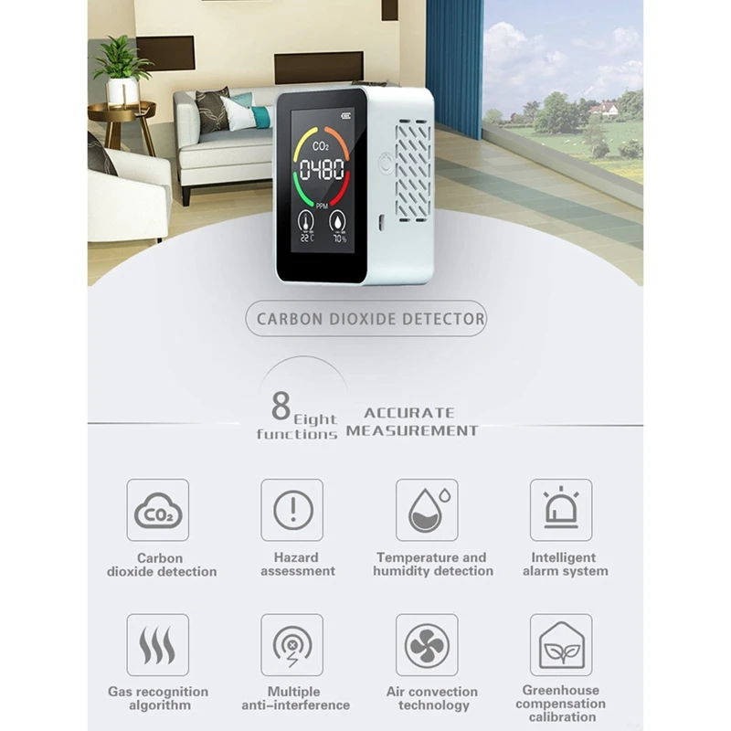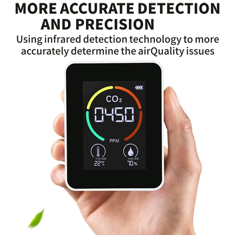 Монитор воздуха CO2 детектор теплицы склад качество воздуха Температура Влажность монитор Быстрый измерительный метр (белый)