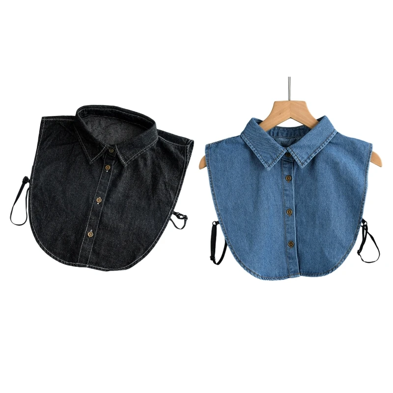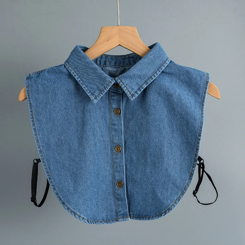 Женская обувь в винтажном стиле, Потертая джинсовая ткань и искусственным воротником осень-зима Съемная Блузка-Манишка на пуговицах наслоения нагрудные Половина Рубашка