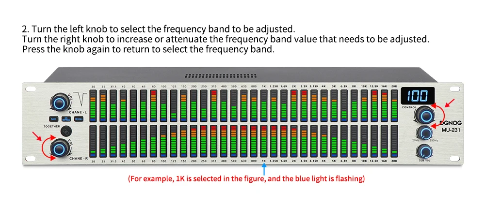 2. Поверните левую ручку, чтобы выбрать диапазон частот для регулировки.