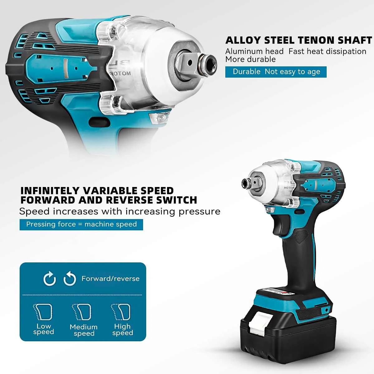 2 в 1 литий-ионная бесщеточная электрическая 1/2 "гаечный ключ 1/4" шуруповерт дрель подходит для строительных площадок, обслуживания, деревообработки и т. Д.