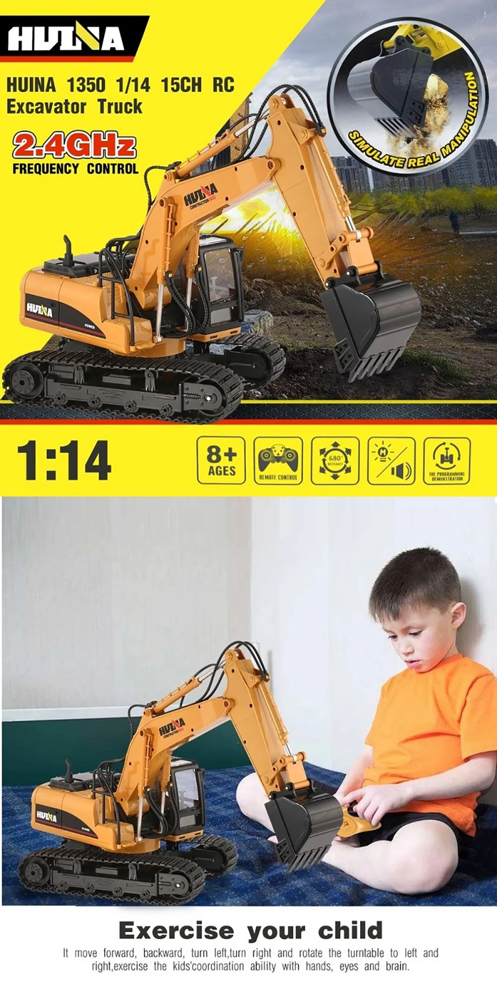 HUINA 1/14 RC грузовик RC экскаватор большой сплав экскаватор на дистанционном управлении кран грузовик 1350 трактор инженерный автомобиль игрушка для мальчика