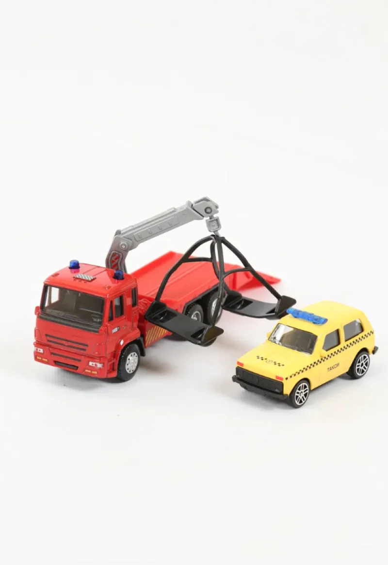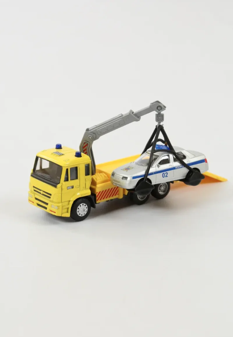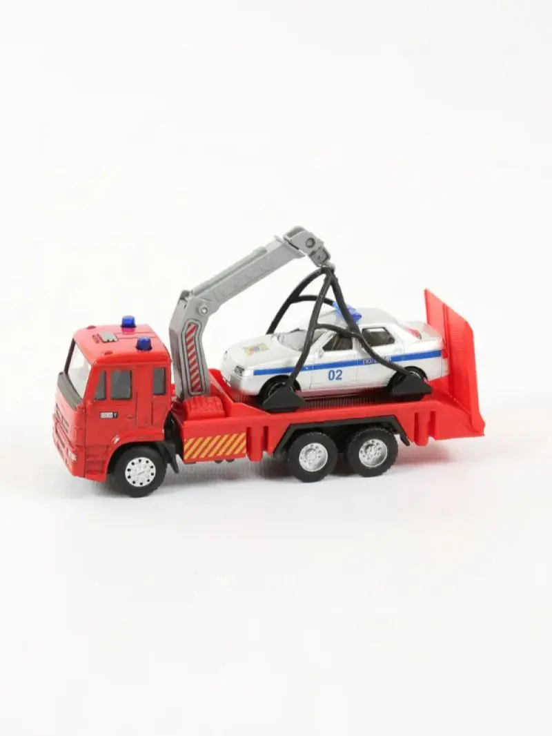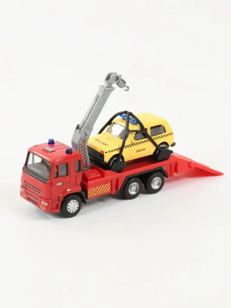 Размеры эвакуатора (ДхШхВ): 14.5х4.3х6.5 см.• Масштаб: 1:54.• Металлическая кабина, резиновые покрышки.• Инерционный механизм движения.• Подвижные элементы: опускается трап, поворачивается и регулируется по высоте стрела.• В комплекте машина 1:64 (7.8 см.) без механизма.• Материалы: металл, пластик, резина.• Соответствует требованиям безопасности продукции.• Для детей от 3-х лет.Эвакуатор с машиной, упакован в коробку. Сделаны из металла.