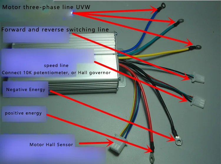 Максимальное напряжение тока контроллер находится в пределах 30v, а минимальное не может быть меньше, чем 10,5 V. Максимальный предельный ток 30A. Вы можете использовать потенциометр около 10k для регулирования скорости, или вы можете использовать переключатель холла.