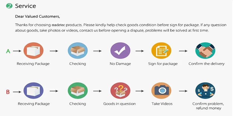 Уведомление1. Пожалуйста, оставьте свое имя грузополучателя, адрес доставки, номер телефона и почтовый индекс во время размещения заказа, чтобы товары могли быть доставлены в вашу руку правильно и своевременно.