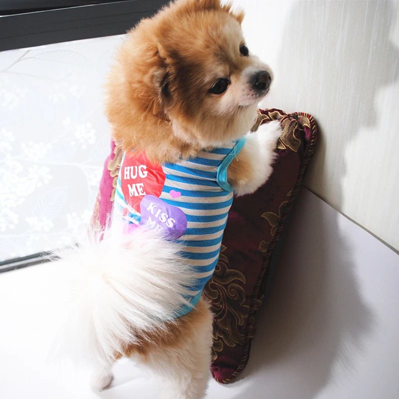 Жилет в полоску с надписями для домашних животных, хлопковый материал, мягкий и удобный, приятный для кожи и дышащий. Дизайн в полоску, стильный и классический. Есть также различные цвета на выбор.