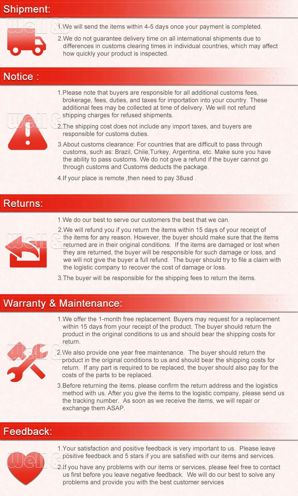 Мы не несем ответственности за любые таможенные пошлины или налог на импорт, это ответственность покупателя.