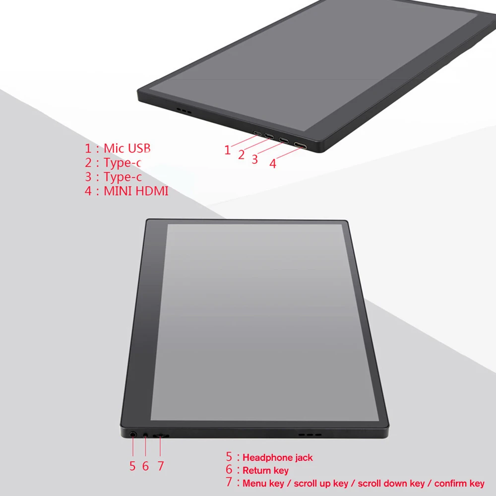 13,3 дюймов сенсорный экран Панель Стекло объектив 2K Портативный сенсорный монитор сердечного ритма двойные динамики IPS HD компьютер Экран USB HDMI совместимых с Тип C