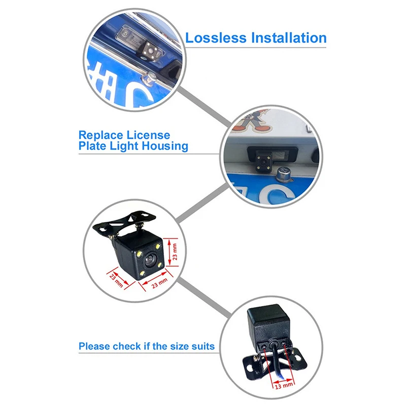 Поскольку различные модели и версии автомобилей имеют некоторые различия в разных странах, пожалуйста, проверьте, соответствует ли размер и внешний вид кронштейна камеры размеру и форме светильник номерного знака.