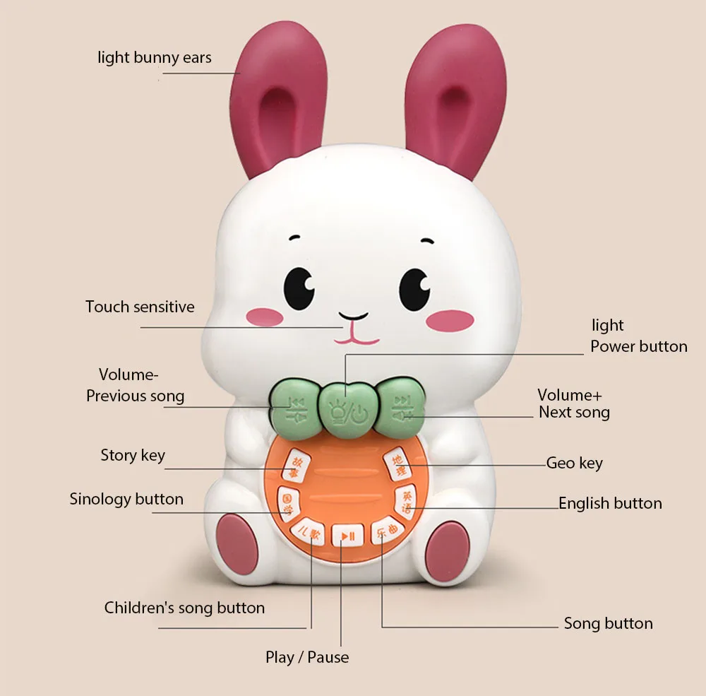 * Прикоснитесь к носу милого кролика с 6 различными интересными звуковыми эффектами