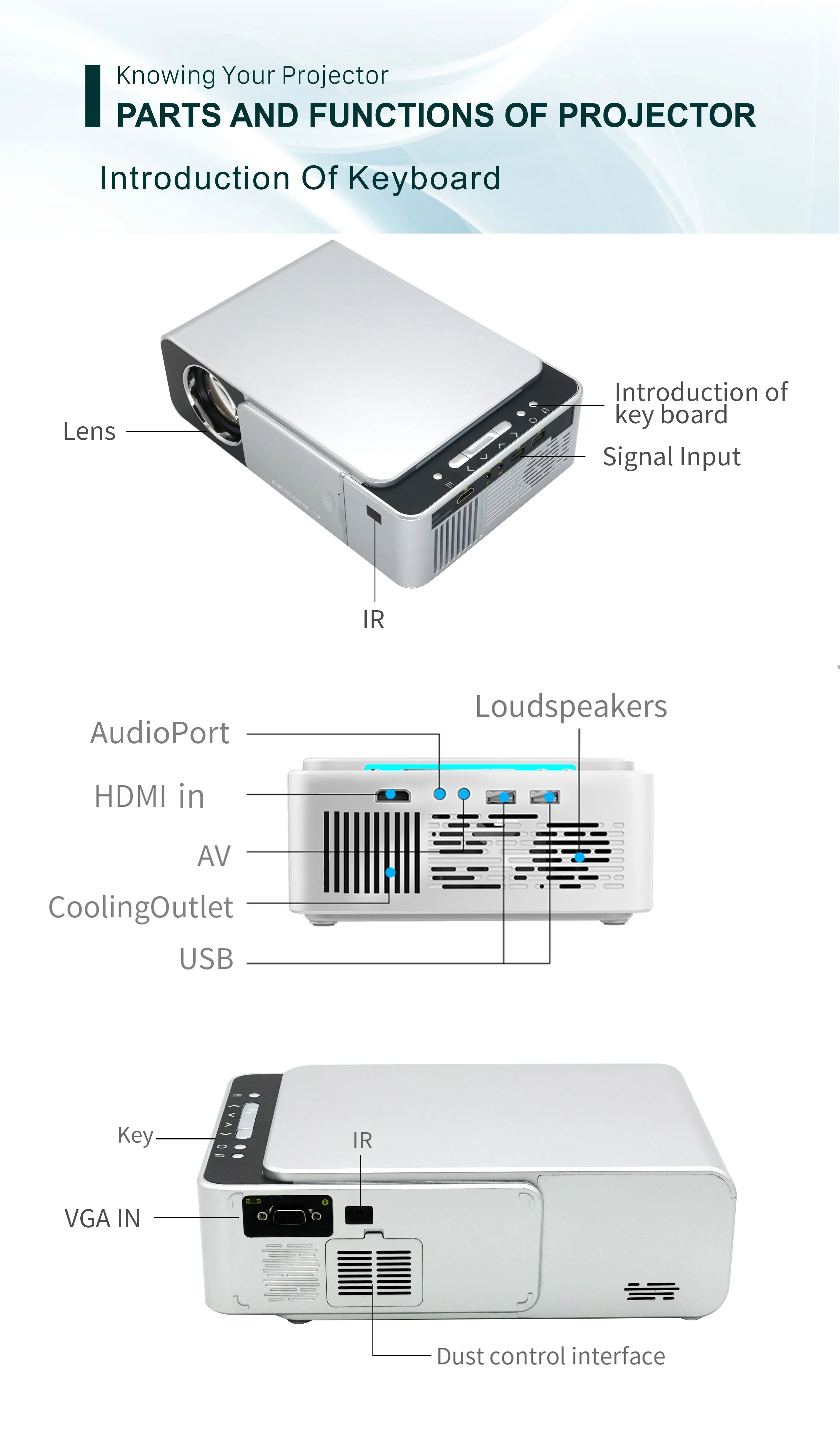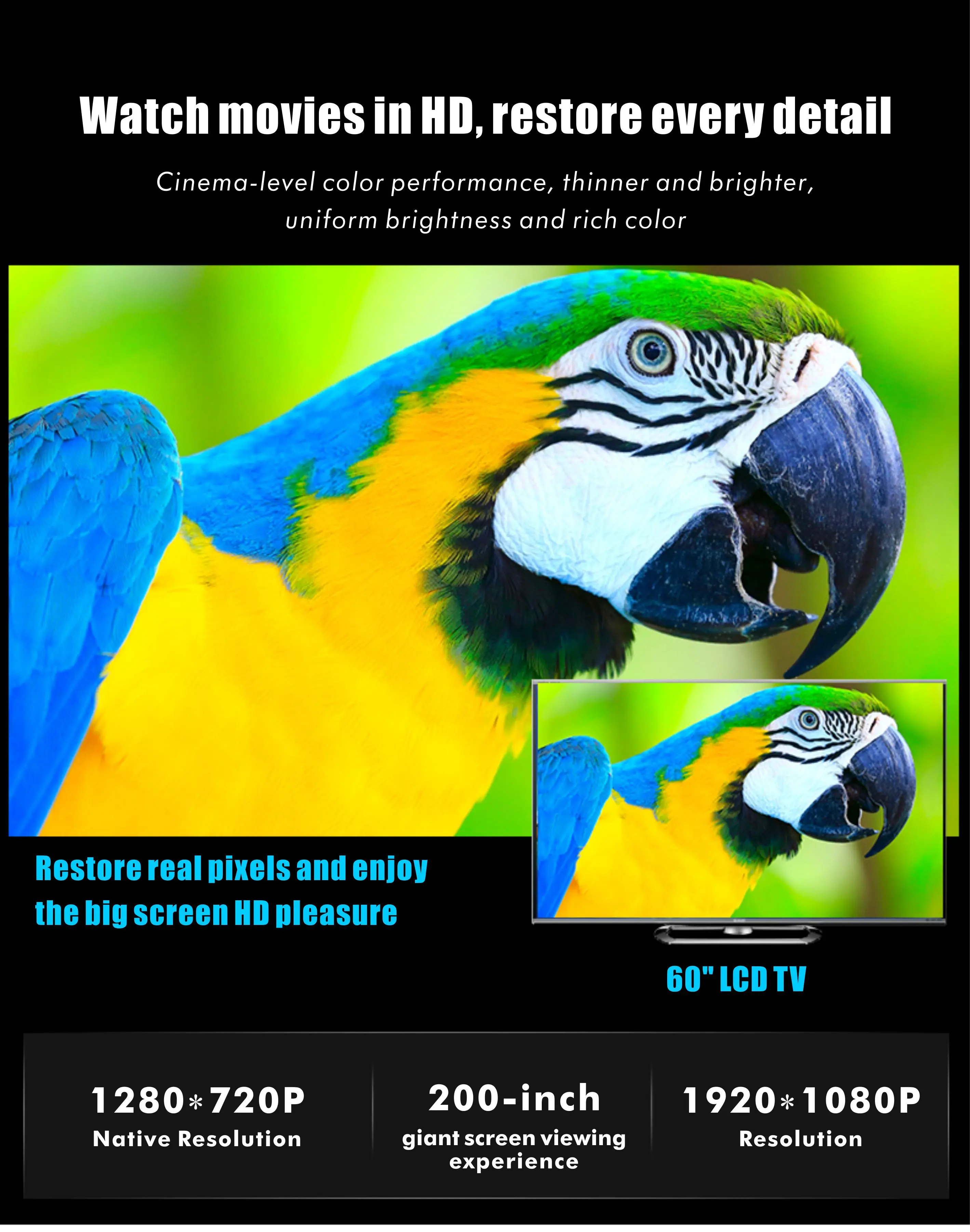 Необычный гигантский горизонт обзора экрана, вы хотите отбросить под разными углами, T6 поддерживает коррекцию трапеции вверх и вниз